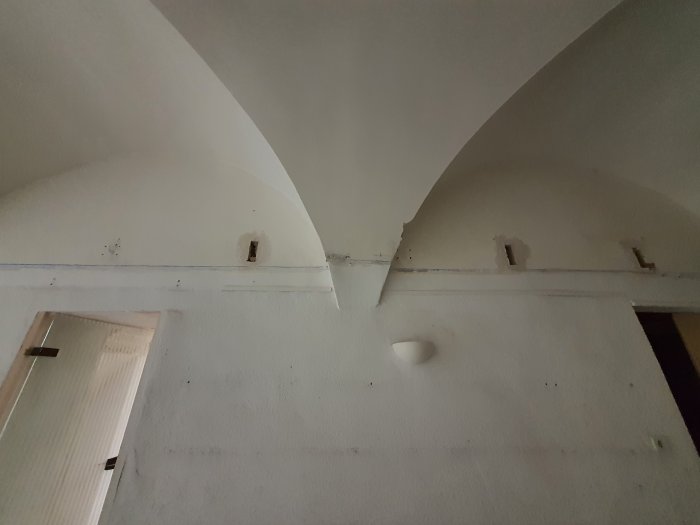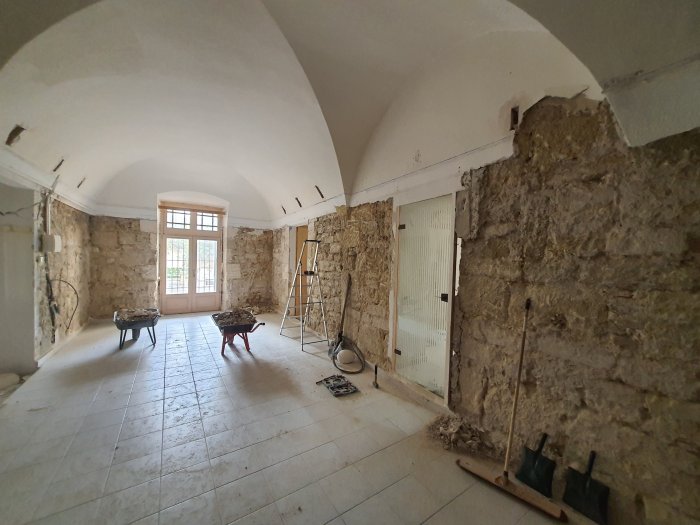 Les voûtes sont alors apparues, dans un état impeccable. Le travail s’est poursuivi par un long décrépissage des murs, qui nécessitera encore des finitions.