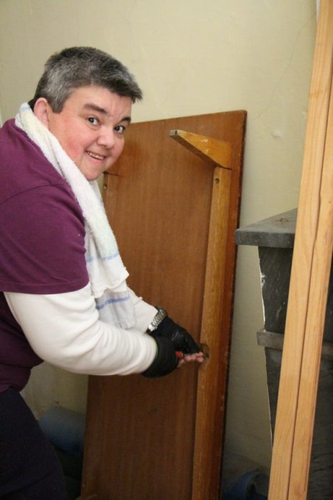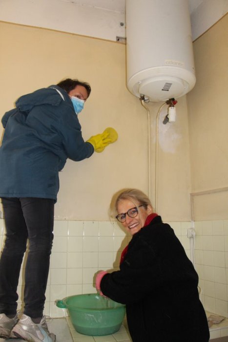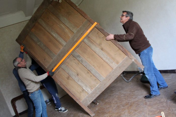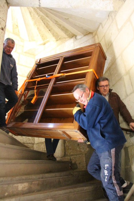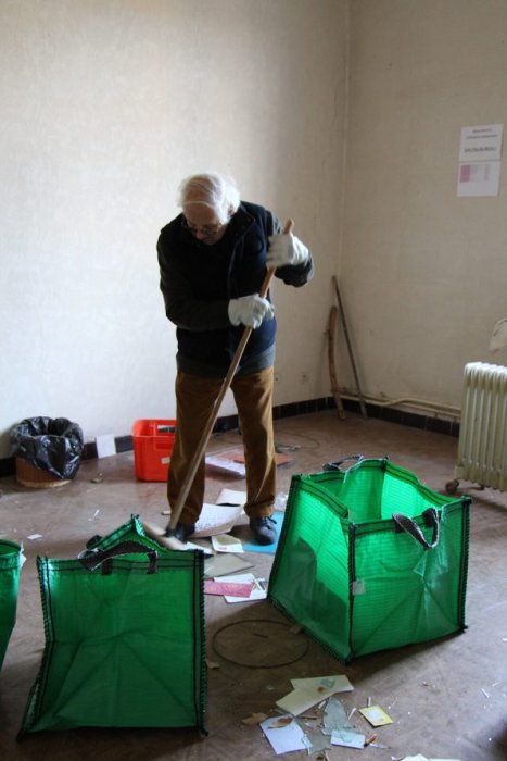 Après un exposé historique des lieux, puis un cadrage financier du projet, la visite du château donne sans détour un aperçu de l’ampleur de la tâche ! Les maîtres des lieux ont bien balisé le terrain pour répartir les rôles de manière efficace : un généreux repas plus tard, chacun s’attelle à sa mission : avec une dévisseuse, un balai, du détergent ou des sacs poubelles, il s’agit de désencombrer la maison de toutes les marques d’un passé encore récent. Un seul objectif : faire place nette en vue de préparer les pièces à leurs futures fonctions... et aux travaux qui suivront.