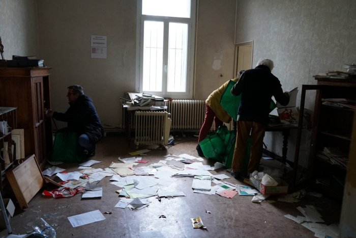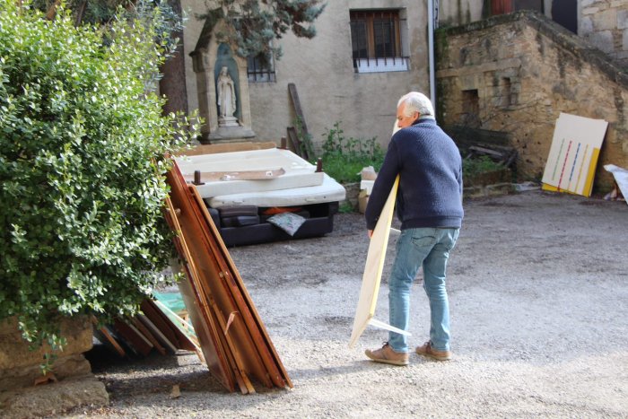 Dans la cour, c’est la gare de triage des trouvailles : à recycler, à donner, à réutiliser, à jeter... En fin de journée, les bennes débordent : c’est bon signe ! C’est également une histoire qui se déroule devant nos yeux : dans les traces de l’ancienne école ou du presbytère, s’écrit déjà la continuité des lieux avec la promesse de nouveaux habitants.